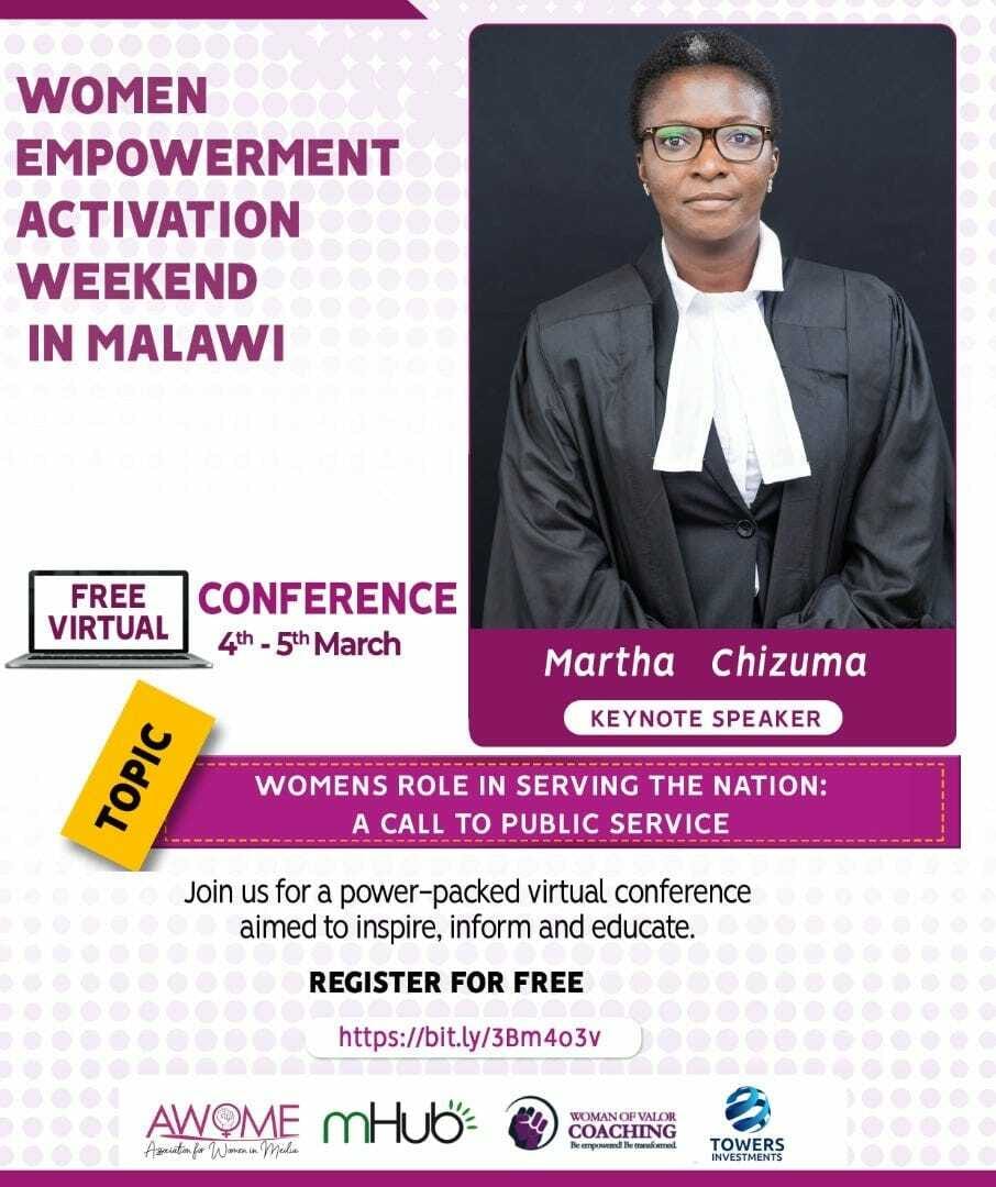The event will be live-streamed on the Facebook Page, WomenEmpowermentActivationMalawi.