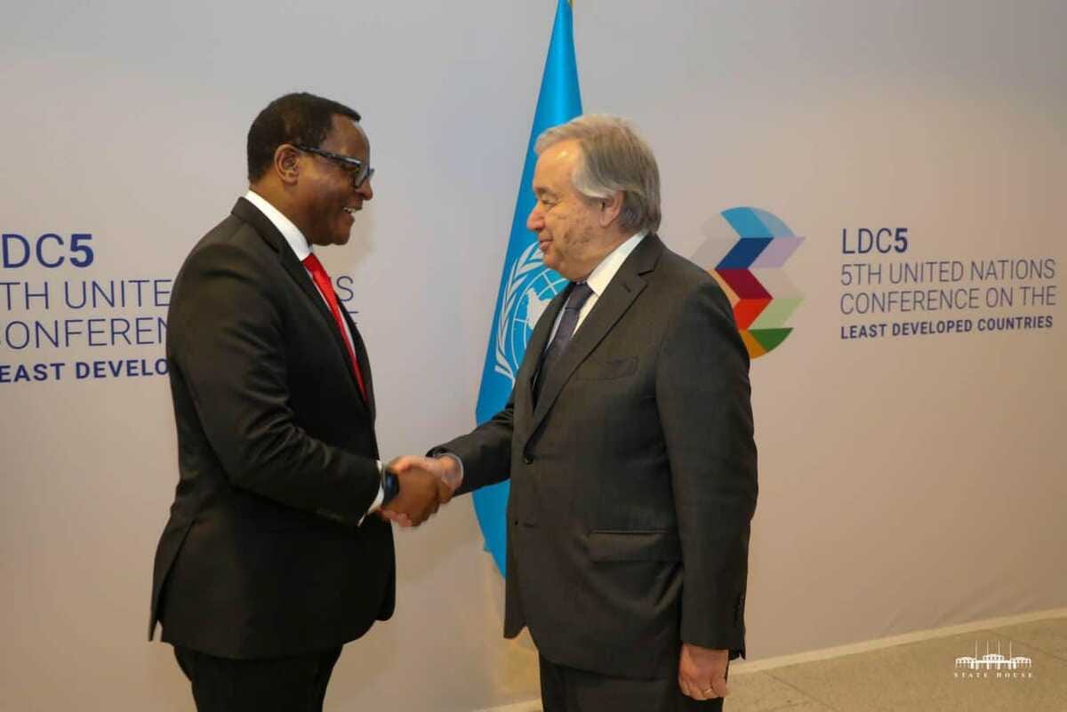 Qatar-Malawi President, Lazarus Chakwera, held a productive bilateral audience with United Nations Secretary-General, António Guterres, on the sidelines of the 5th LDC Summit of Heads of State.